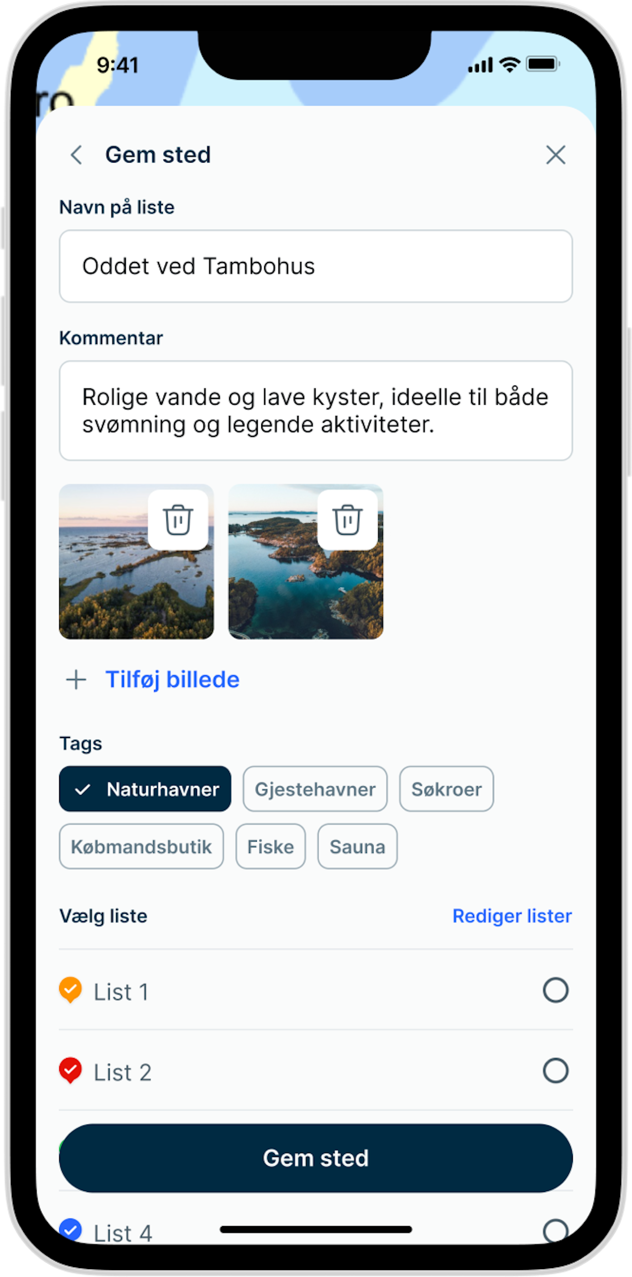 Når du downloader appen og opretter en konto, får du altid adgang til et overskueligt søkort (OBS! Ikke til navigation), information om AIS-både og mulighed for at søge efter havne, sørestauranter og septiktanke. Derudover kan du gemme og dele steder samt rejseinspiration med dine venner.